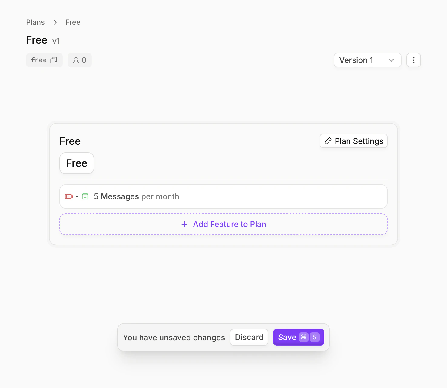 messagesfeature that you created in the Free plan - Configure the plan to grant