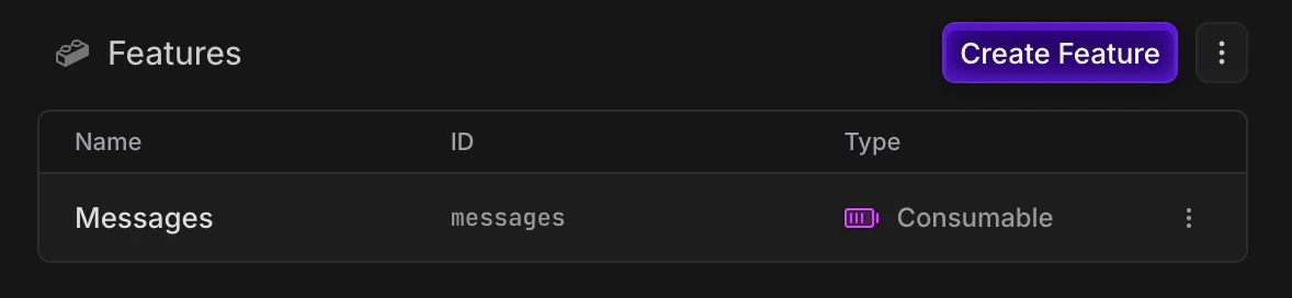 Create ametered consumable feature for our messages, so we can track their balance.
